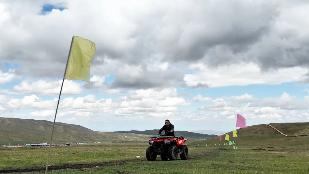 游客体验草地摩托。