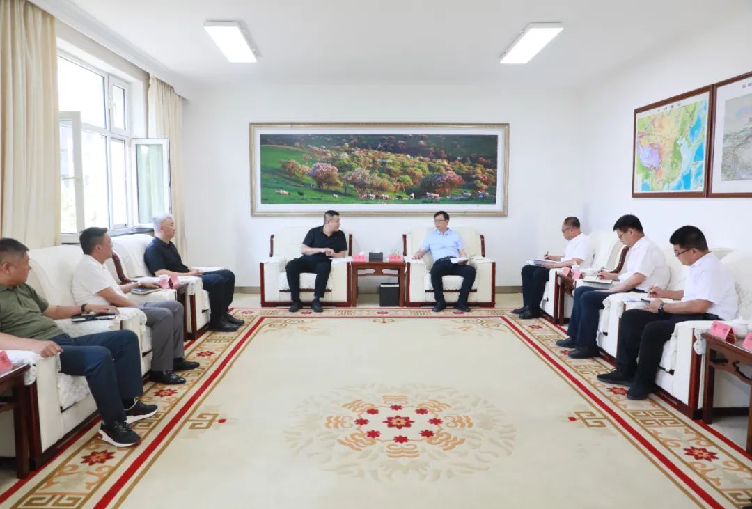 7月4日,地委书记支现伟与山东忆清云餐饮文化集团股份有限公司董事长孙青云一行座谈。塔城地区融媒体中心记者苏珊琳摄