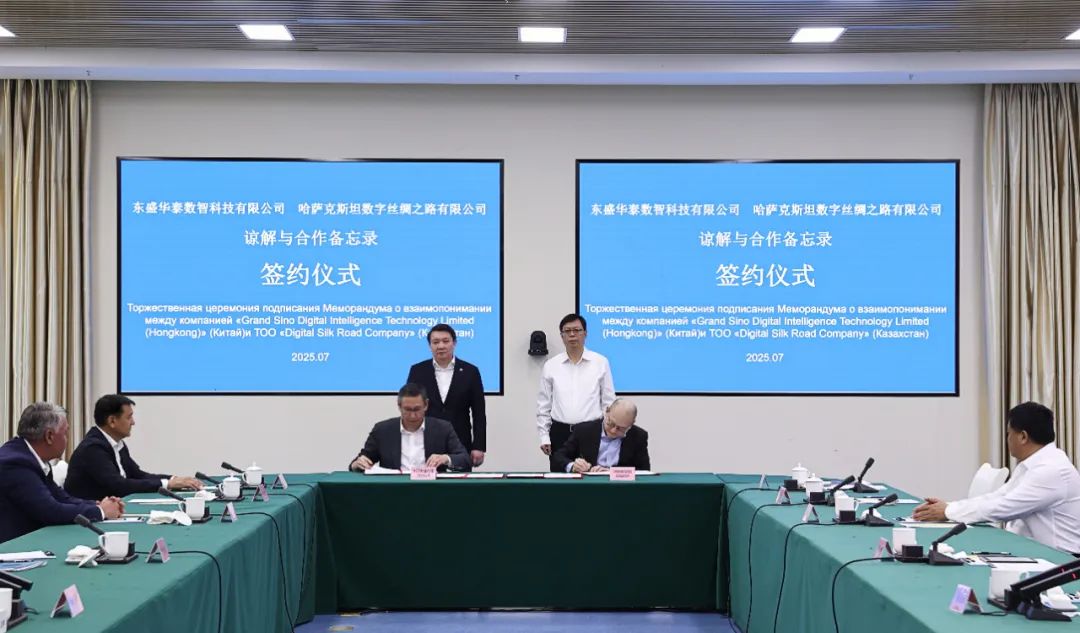 会谈中,东盛华泰数智科技有限公司与哈萨克斯坦数字丝绸之路有限公司签署谅解与合作备忘录。