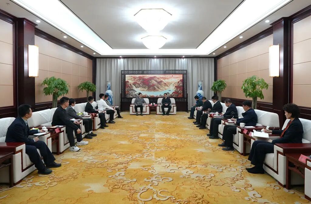 3月31日,地委书记支现伟会见中国国际跨国公司促进会轮值秘书长葛玮一行。塔城地区融媒体中心记者苏珊琳摄