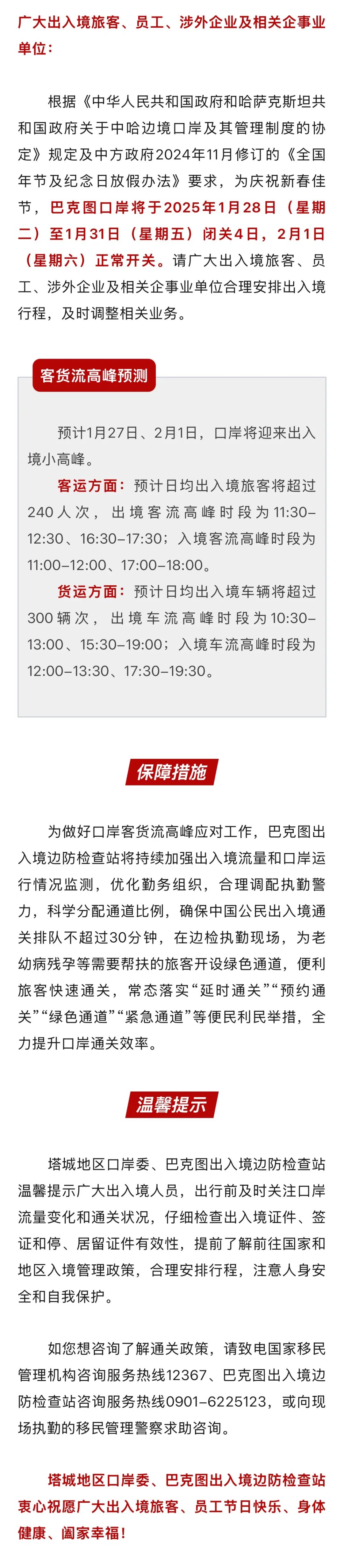 巴克图口岸春节闭关公告暨“两公布一提示”