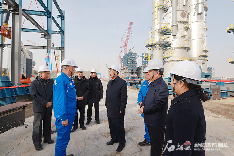 2月17日,自治区党委书记、兵团党委第一书记、第一政委马兴瑞在巴音郭楞蒙古自治州轮台县、库尔勒市和兵团铁门关市调研。这是马兴瑞来到位于库尔勒上库高新区石油石化产业园的中石油独山子石化公司120万吨/年二期乙烯项目建设现场,详细了解施工情况。天山网-新疆日报记者 崔志坚摄