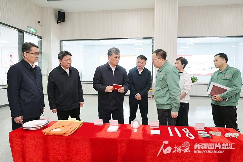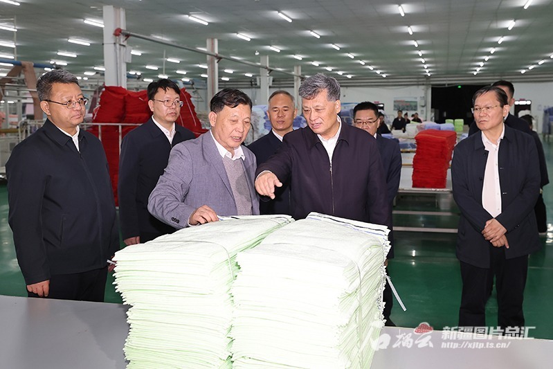 4月5日,自治区党委书记、兵团党委第一书记、第一政委马兴瑞来到阿拉尔市走进纺织品生产企业,详细听取生产经营、带动群众就业增收情况介绍。天山网-新疆日报记者 崔志坚摄