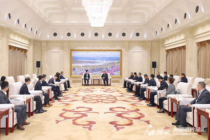 4月28日,自治区党委书记马兴瑞、自治区主席艾尔肯·吐尼亚孜在乌鲁木齐会见国泰集团行政总裁林绍波一行。天山网-新疆日报记者 崔志坚摄