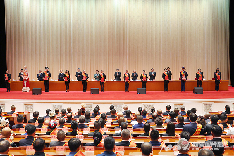 4月30日,自治区党委书记、兵团党委第一书记、第一政委马兴瑞,自治区党委副书记、自治区主席艾尔肯·吐尼亚孜等为自治区先进工作者代表颁发荣誉证书。天山网-新疆日报记者 谢龙摄