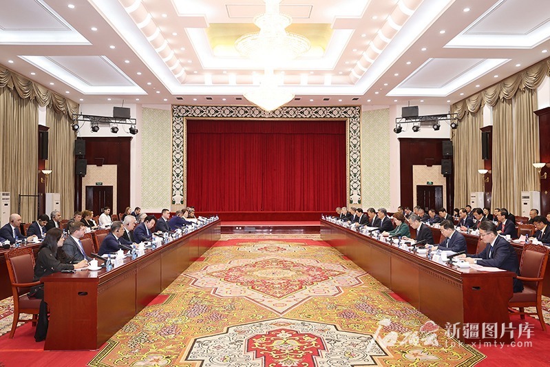 5月12日,自治区党委书记马兴瑞,教育部党组书记、部长怀进鹏在乌鲁木齐会见来新疆出席首届中国—中亚教育部长会议、第九届上海合作组织成员国教育部长会议和2025中国—中亚产学研用合作会议的中外重要嘉宾。天山网-新疆日报记者 崔志坚摄