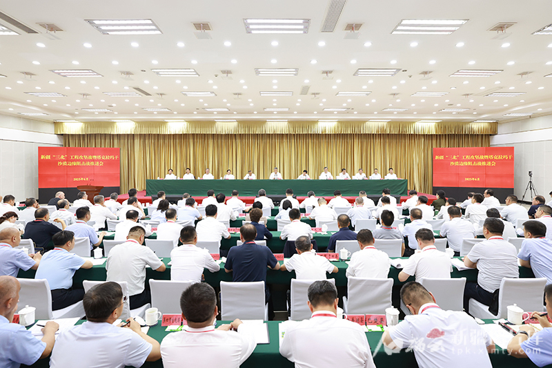天山网-新疆日报讯(记者王兴瑞报道)6月24日,新疆“三北”工程攻坚战暨塔克拉玛干沙漠边缘阻击战推进会在和田召开,深入践行习近平生态文明思想,学习贯彻习近平总书记关于防沙治沙的重要论述特别是在加强荒漠化综合防治和推进“三北”等重点生态工程建设座谈会上的重要讲话精神,总结成绩经验,部署重点工作,全力打赢“三北”工程攻坚战,巩固拓展塔克拉玛干沙漠边缘阻击战成果,坚决筑牢我国北方生态安全屏障。