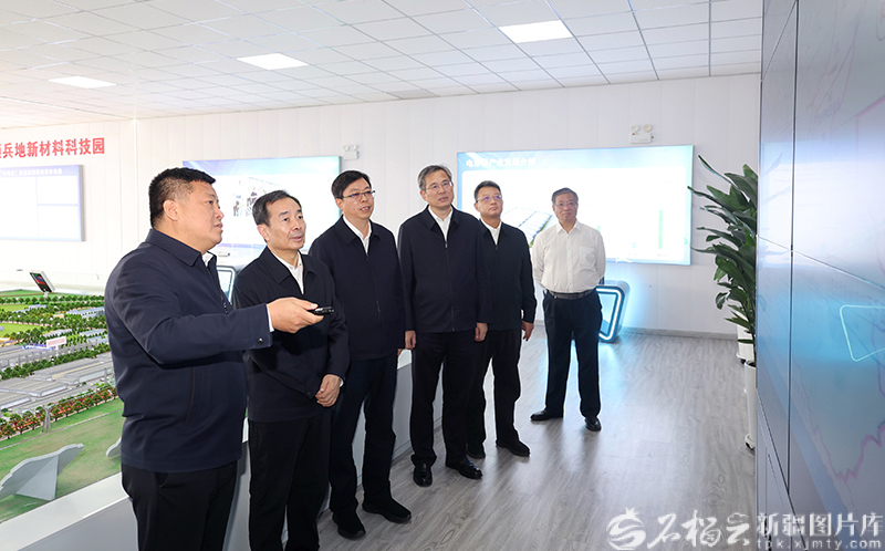 9月9日,自治区党委书记、兵团党委第一书记、第一政委陈小江在新疆塔额兵地新材料科技园,听取园区新能源项目规划和重点项目推进情况介绍。天山网-新疆日报记者 崔志坚摄