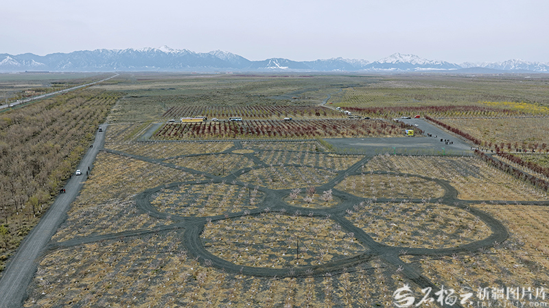4月21日,俯瞰乌鲁木齐县乌板乌水公路两侧生态防护林建设工程现场。天山网-新疆日报记者 周鹏摄