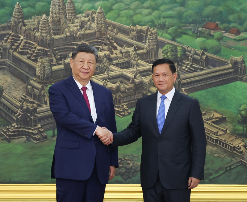 新华社金边4月17日电(记者 郝薇薇 张远 吴夏)4月17日晚,国家主席习近平同柬埔寨首相洪玛奈在金边和平大厦举行会谈。两国领导人一致同意携手构建新时代全天候中柬命运共同体,宣布2025年为“中柬旅游年”。