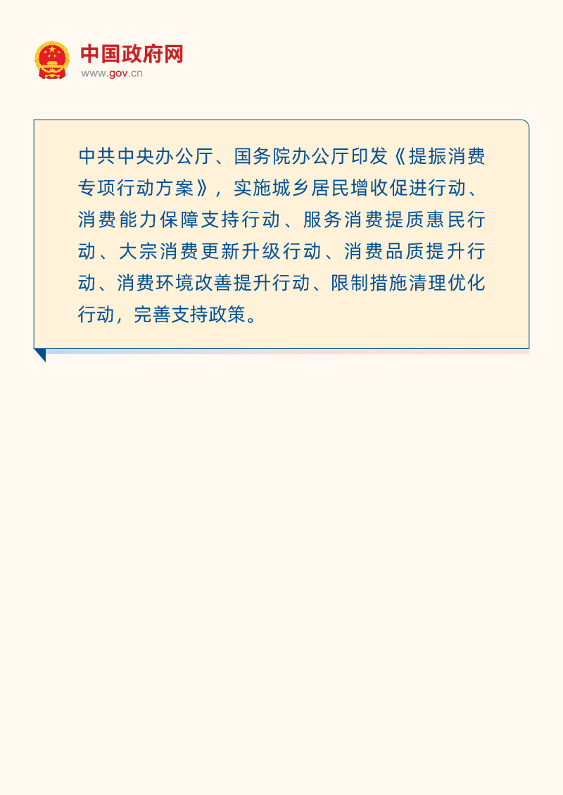 中共中央办公厅 国务院办公厅印发 《提振消费专项行动方案》