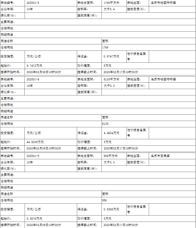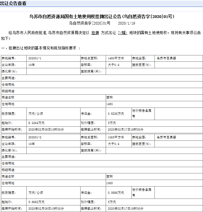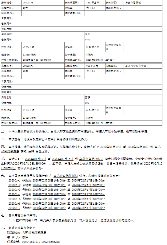 乌苏市自然资源局国有土地使用权挂牌出让公告01号