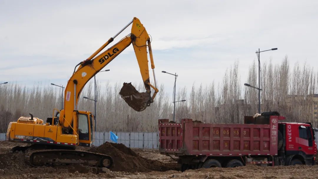 红花交易批发市场项目地基施工。塔城地区融媒体中心记者王高升摄