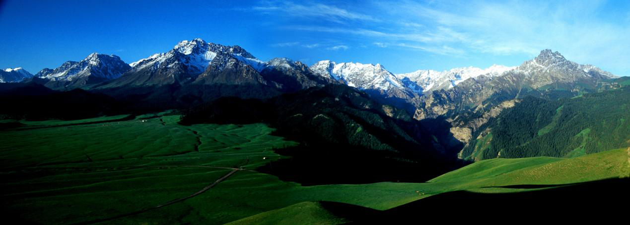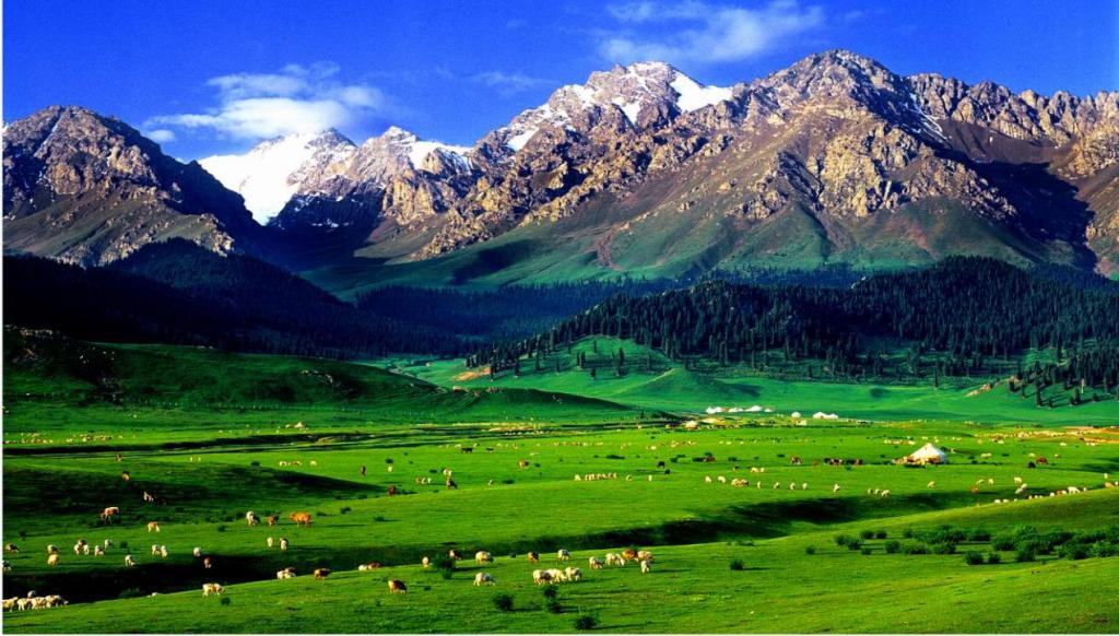 东大塘景区位于天山深处,东与蒙古庙隔山相望,系国家AAA级旅游景区,有天然氧吧之称。东部有百米瀑布从崖头飞流直下,直泻沟底深潭。南部高山峻岭绵延,山中有河,清流淙淙。西面是主景区东大塘,在丘陵之间分布着山坳与盆地,柳树、桦树、杨树、松树与野花草场混交,形成了特殊的丘陵草原。蒙古庙与东大塘景区隔山相望,海拔1918米。始建于明代后期,由于这里云杉繁茂,水草肥美,是上乘的天然牧场,被蒙古卫拉特部落的牧民看作天赐“福地”,从而成为蒙古牧民聚会、祈福的地方。