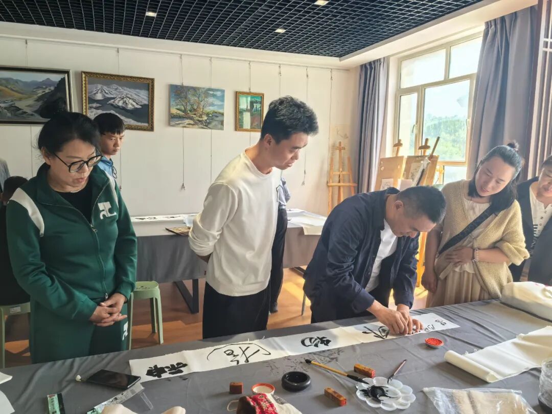 乌木鲁齐市书法家协会副主席李良以笔为媒现场示范创作。画笔饱蘸浓墨,笔锋游走间,一幅幅苍劲有力、韵味十足的书法作品呈现在大家眼前。他一边书写,一边讲解书法技巧和文化内涵,让大家领略到书法艺术的精髓。