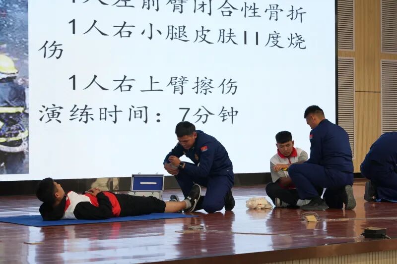比赛当天涵盖心肺复苏(含现场除颤)、创伤救护(头部右侧出血、左前臂中段闭合性骨折、右小腿中段闭合性骨折)、救护演讲三个项目,决赛则包含理论知识竞赛与场景演练。