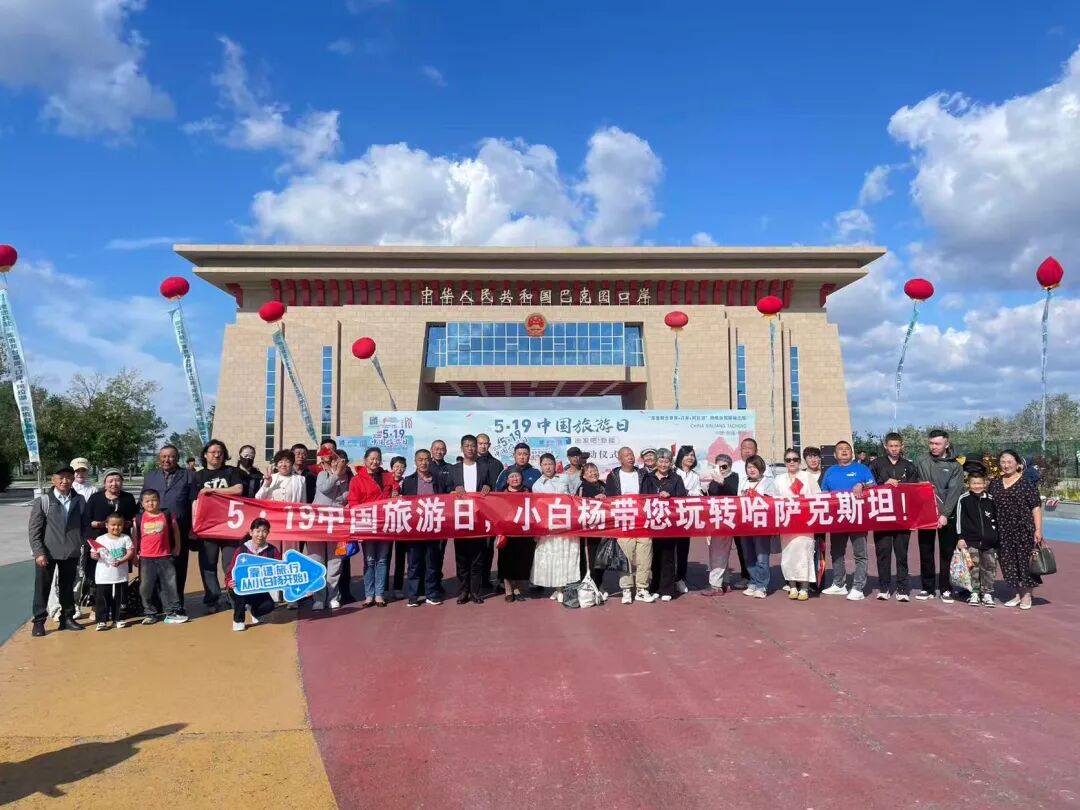 游客在巴克图口岸合影。加孜拉•托尔很摄
