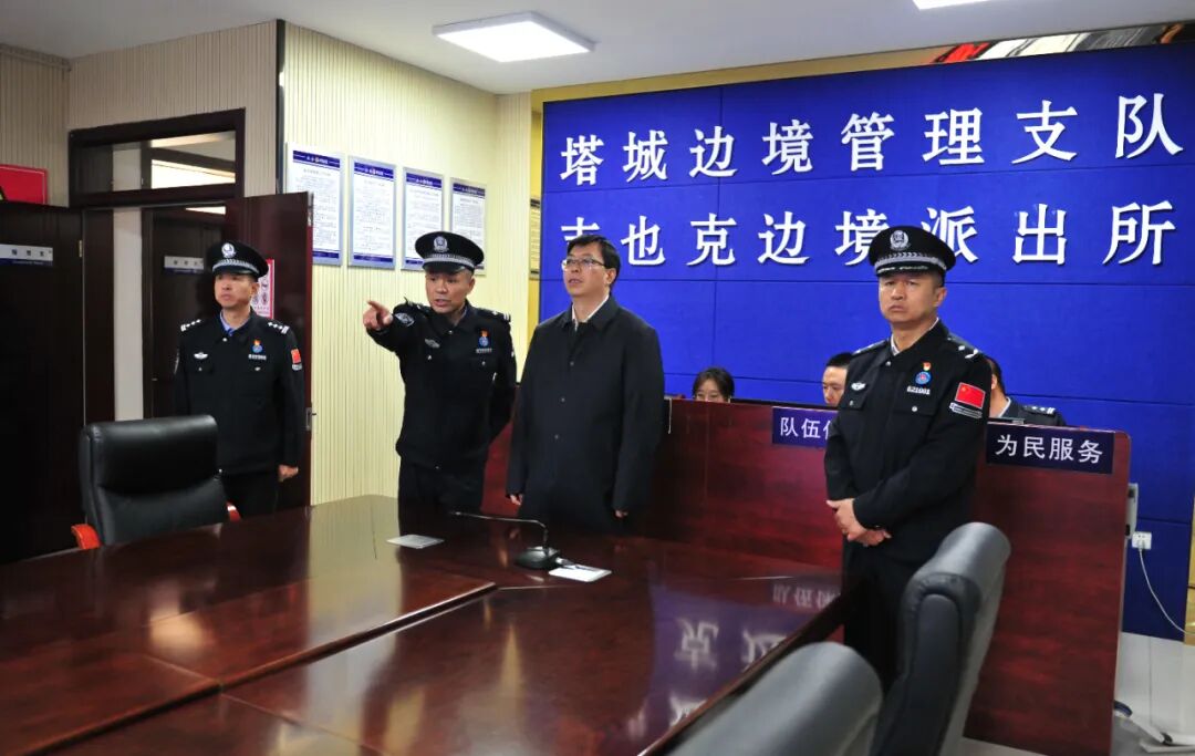 10月2日,地委书记支现伟在裕民县吉也克边境派出所,听取辖区基本情况汇报并现场调度社会面巡逻防控工作开展情况。塔城地区融媒体中心记者汪春林摄